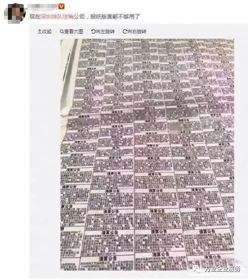 事實上,這個有點夸張了,被普遍轉(zhuǎn)發(fā)的上述圖片應(yīng)為深圳商報廣告版面,刊登各類公告、遺失聲明、啟示等。版面上的確以清算公告居多,但一直如此,并非新情況。
