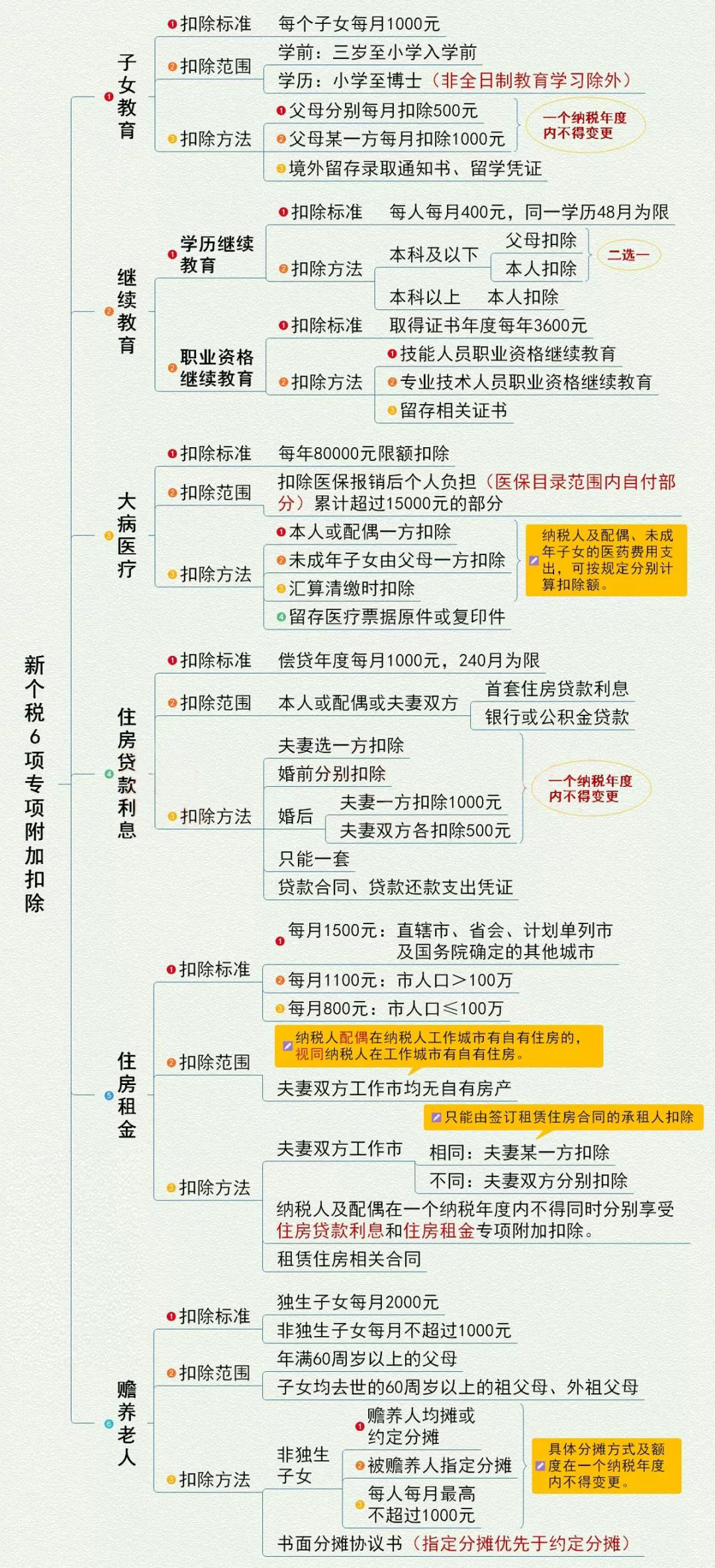 即:子女教育、繼續(xù)教育、大病醫(yī)療、住房貸款利息、住房租金、贍養(yǎng)老人。