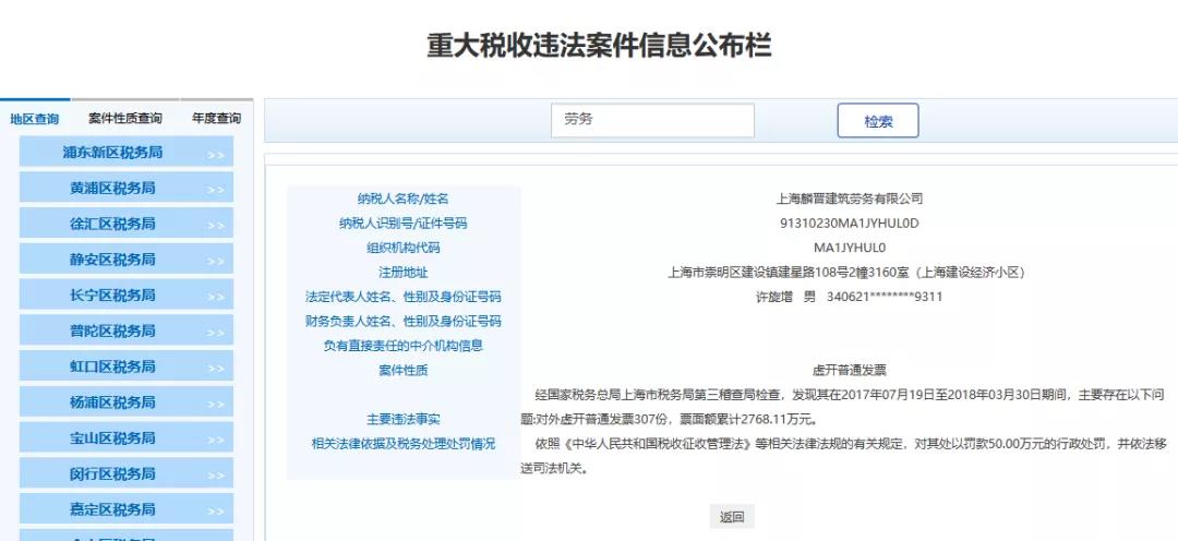 最近魔都上海傳來大消息,多家勞務公司和人力公司被查,清一色的罰款+移送司法機關,不難看出勞務公司一直是稽查重點,也是虛開的重災區(qū),一查一個準!
