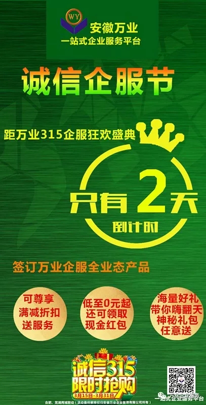 現(xiàn)為了響應(yīng)315誠信服務(wù)消費者的號召,安徽萬業(yè)特推出315企服節(jié)盛典活動。