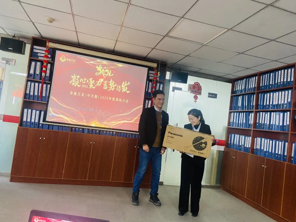 2月8號(hào),安徽萬業(yè)(中天衡)在公司舉辦了2021年會(huì)盛典,并取得圓滿成功。我司黃總,中天衡王所參加此次活動(dòng)并在會(huì)上致辭。 第一篇章 2020總結(jié)暨2021工作規(guī)劃 活動(dòng)開始時(shí),隨著黃總的登臺(tái)致辭,年會(huì)正式拉開了帷幕,首先黃總對(duì)公司2020年疫情之下逆勢(shì)而上取得的豐碩成果予以肯定,對(duì)長(zhǎng)期以來支持萬業(yè)的合作伙伴、辛勤工作的全體員工,致以熱切的慰問和感謝并送上了新春的祝福。黃總表示公司將在2021年繼續(xù)加快企業(yè)多元化發(fā)展的步伐,為企業(yè)帶來新的發(fā)展契機(jī)。 隨后,各部門負(fù)責(zé)人開始了他們的年度匯報(bào),總結(jié)2020年自己部門的不足與成果,暢談2021各團(tuán)隊(duì)目標(biāo)業(yè)績(jī),發(fā)展使命。 第二篇章 表彰大會(huì)與年終獎(jiǎng)?lì)C發(fā) 接著,迎來了最令人激動(dòng)人心的年終獎(jiǎng)?lì)C發(fā)環(huán)節(jié),在眾人期待的目光中,黃總向各位員工表現(xiàn)派發(fā)年終獎(jiǎng)勵(lì),這是企業(yè)對(duì)大家誠摯的祝福,也是對(duì)全體員工的工作成績(jī)的認(rèn)可。 第三篇章 抽獎(jiǎng) 年終獎(jiǎng)的頒發(fā),慷概激昂、振奮人心,全體員工歡聲笑語,為人們呈現(xiàn)出新春的活力與美好。同時(shí),中間穿插的抽獎(jiǎng)環(huán)節(jié)更是把年會(huì)晚宴的現(xiàn)場(chǎng)氣氛推向了最高潮,松下吸塵器、黛珂水乳套裝、三明治機(jī)等重磅好禮一一送出,激勵(lì)大家奮發(fā)向上。 律回春暉漸,萬象始更新