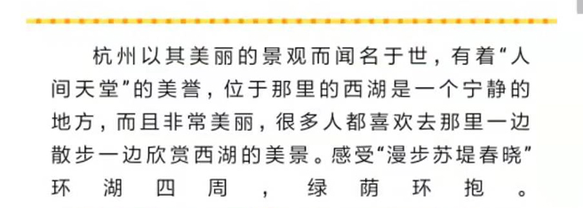 而聞名于世,有著“人間天堂”的美譽(yù),位于那里的西湖是一個(gè)寧靜的地方,而且非常美麗,很多人都喜歡去那里一邊散步一邊欣賞西湖的美景。感受“漫步蘇堤春曉”環(huán)湖四周,綠蔭環(huán)抱。